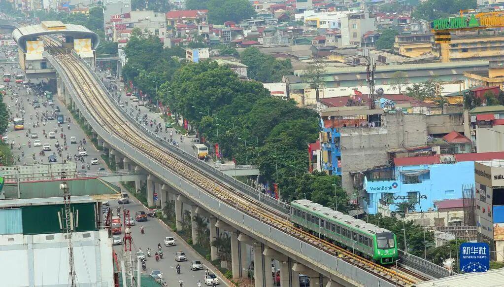 2021年11月6日,由中企承建的越南首条城市轻轨——河内吉灵-河东轻轨投入运行 图:新华社/越通社
