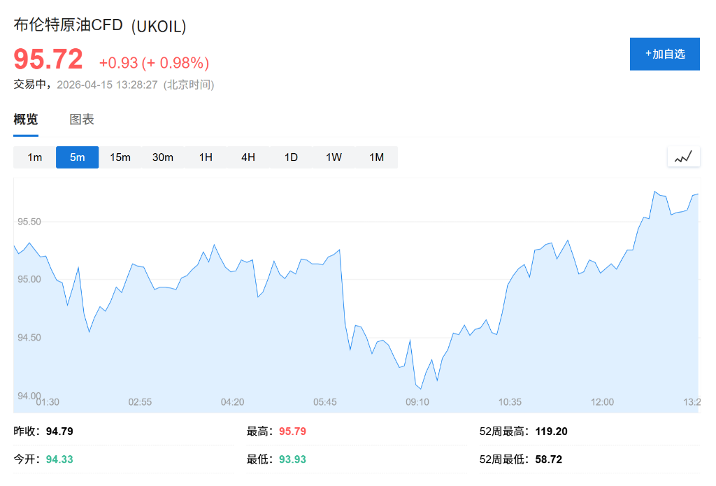 据新华社,美国总统特朗普告诉一家美媒,与伊朗会谈“可能未来两天内”在巴基斯坦举行。据媒体报道,特朗普在接受福克斯新闻采访时称,他认为这场战争\"接近结束\"。这一表态短暂压低油价,布伦特原油盘中一度跌至每桶93.93美元。